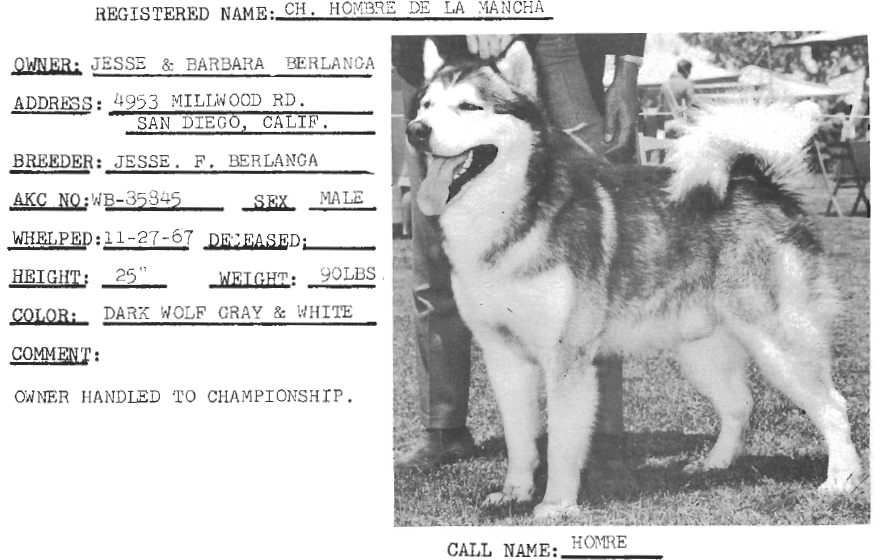 ![]() Tigara's Sabrina of Arctica, Ch, Grey & White, 01/01/1972, HD Fair | Tigara's Torch of Arctica, Ch., Grey & White, 20/05/1960 | ![]() Tigara's Arctic Explorer, CH, Grey & White, 01/09/1955 | |